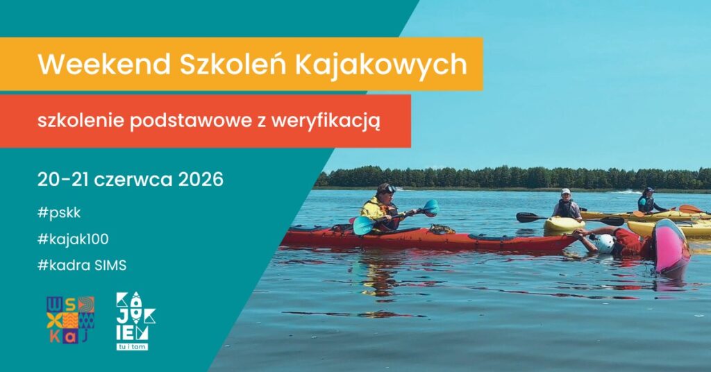 - cena: 350 zł – szkolenie, 50 zł – weryfikacja (można wziąć udział w samej weryfikacji), wypożyczenie kajaka na cały weekend – 100 zł